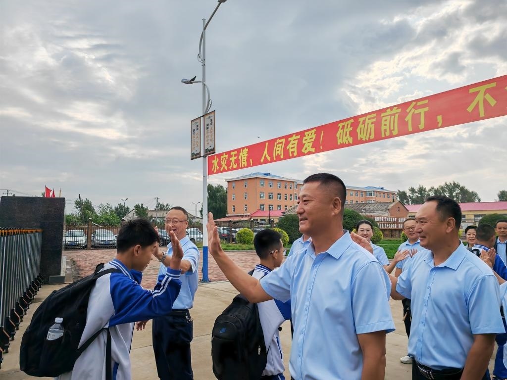 清晨,黑龍江省延壽縣第四中學的教職工排成兩列,迎接學生們返校。學生們背著書包陸陸續(xù)續(xù)進入校園,依次與教職工擊掌。“老師好”“四中歡迎你們”“開學快樂”等祝福此起彼伏。