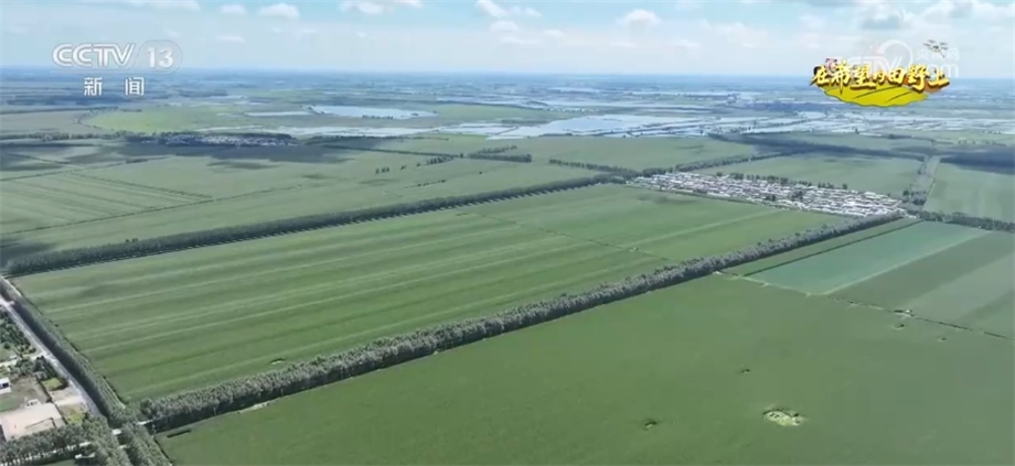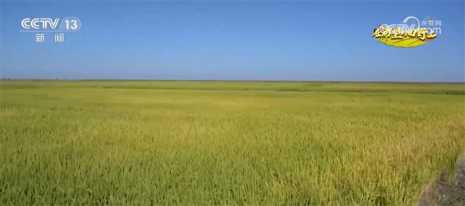 總臺央視記者 蔣樹林:這里是國家耐鹽堿水稻技術(shù)創(chuàng)新中心東北中心的千畝示范園,我手指的這個方向是沒有利用過的原始風(fēng)貌的鹽堿荒灘,這邊是已經(jīng)改造后生長水稻的鹽堿地。如果后期沒有大的自然災(zāi)害,今年豐收會有一定基礎(chǔ)。