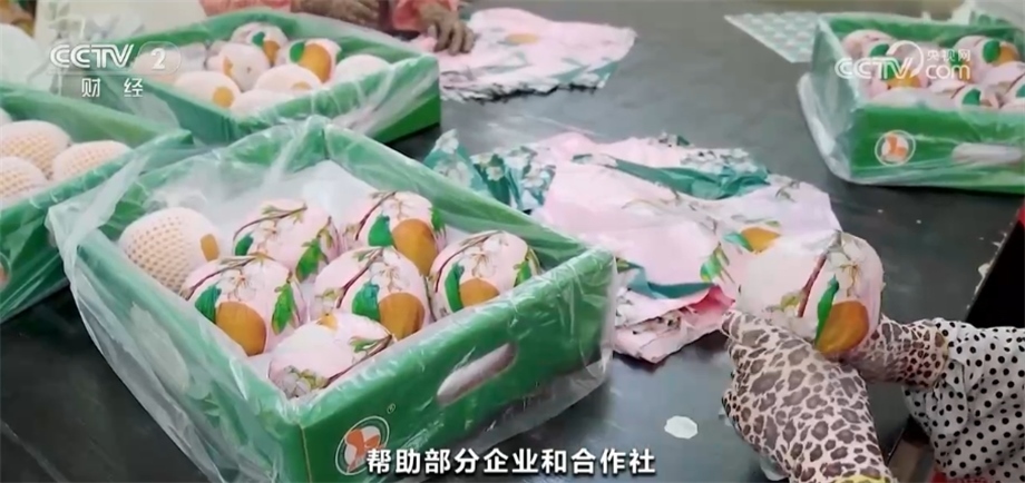 在當(dāng)?shù)匾患液献魃?,記者看到,工人們正在分揀果子,套袋裝箱,這些秋月梨將銷(xiāo)往全國(guó)各地。