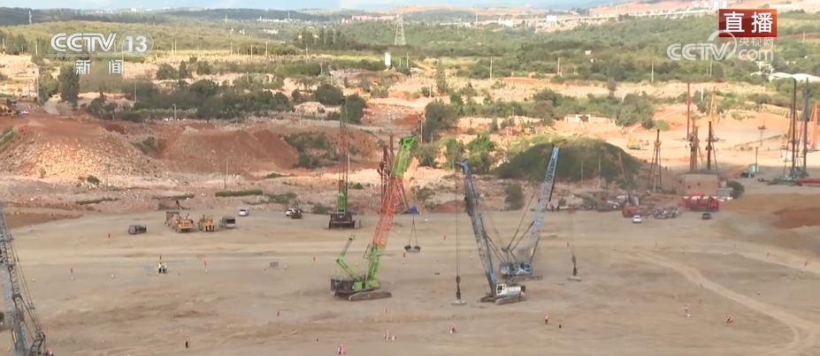總臺(tái)記者 劉文杰:在昆明長水機(jī)場(chǎng)改擴(kuò)建工程的現(xiàn)場(chǎng),75萬多平方米的作業(yè)范圍內(nèi),有100多臺(tái)大型碎石樁基和強(qiáng)夯機(jī)。這些高達(dá)二三十米的設(shè)備,它們遍布整個(gè)施工場(chǎng)地,在技術(shù)人員操作下,正在忙碌地進(jìn)行施工作業(yè)。在工地里穿梭的這些運(yùn)輸車輛,從其他地方往這里拉送建筑材料,因?yàn)楝F(xiàn)在施工的需求量大,每天要300多臺(tái)車來回運(yùn)輸才能保障到位。