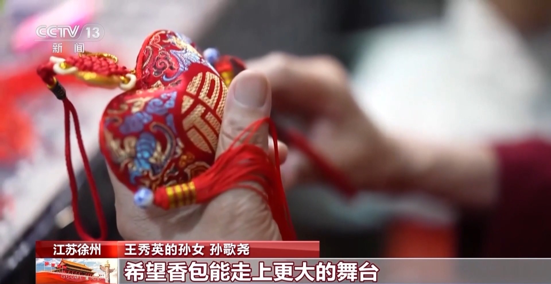 王秀英的孫女 孫歌堯:我奶奶是第三代傳承人,她已經(jīng)做了70多年了,到我這里是第五代,我覺(jué)得我也是有必要把它傳承下去。希望香包能走上更大的舞臺(tái),能走出徐州,走向世界。