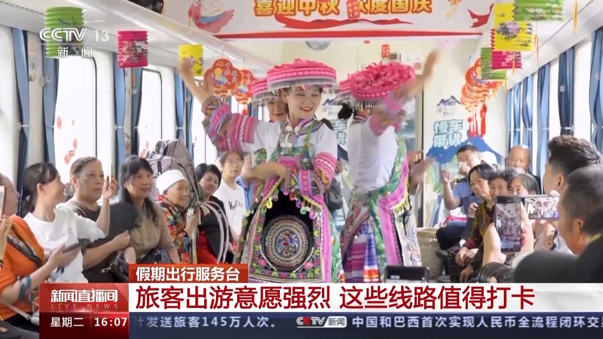這趟列車抵達貴陽后,旅客還能轉(zhuǎn)乘不久前開通的另一條高鐵線路——貴南高鐵,前往荔波小七孔、瑤山古寨等景區(qū)游玩。為適應火爆的旅游客流,現(xiàn)在貴南高鐵每天開行76列。此外,針對假期市民出游意愿強烈,鐵路還開行成都至大涼山的“熊貓專列”,貴州遵義至重慶西的“民俗文化慢火車”。