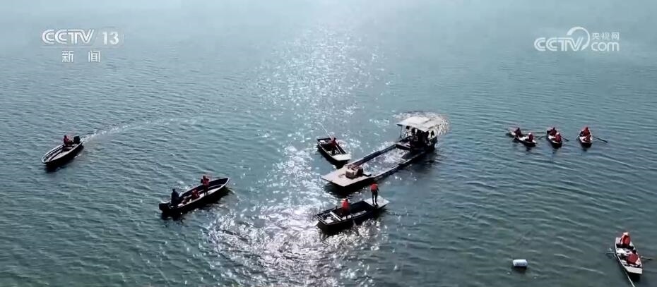 這里是河南信陽(yáng)南灣湖,也叫南灣水庫(kù),漁業(yè)資源豐富。一場(chǎng)秋雨過(guò)后,碧空如洗,山色蔥翠,水面湖光瀲滟,煙波浩渺。眼下,南灣湖迎來(lái)開(kāi)漁收獲的季節(jié)。十幾艘捕魚(yú)船拉開(kāi)巨大的漁網(wǎng),一聲號(hào)令,船上的漁民快速將漁網(wǎng)拉出水面,魚(yú)兒雀躍,翻騰起浪花朵朵,又是一個(gè)豐收年!