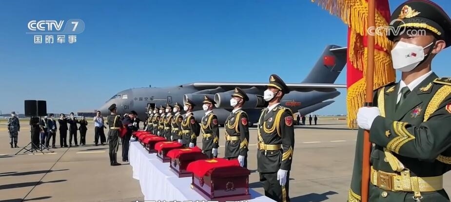 空軍航空兵某團(tuán) 孟洋:當(dāng)時(shí)在儀式的現(xiàn)場(chǎng),我們機(jī)組成員是列隊(duì)在飛機(jī)的后艙位置,準(zhǔn)備迎接烈士遺骸上飛機(jī)。當(dāng)儀仗隊(duì)隊(duì)員緩緩地將棺槨搬上飛機(jī)的那一刻,我看著一面面國(guó)旗覆蓋在棺槨上,直到那一刻,我才更加深刻地理解我們國(guó)旗的顏色是由無數(shù)革命先烈鮮血染成的。