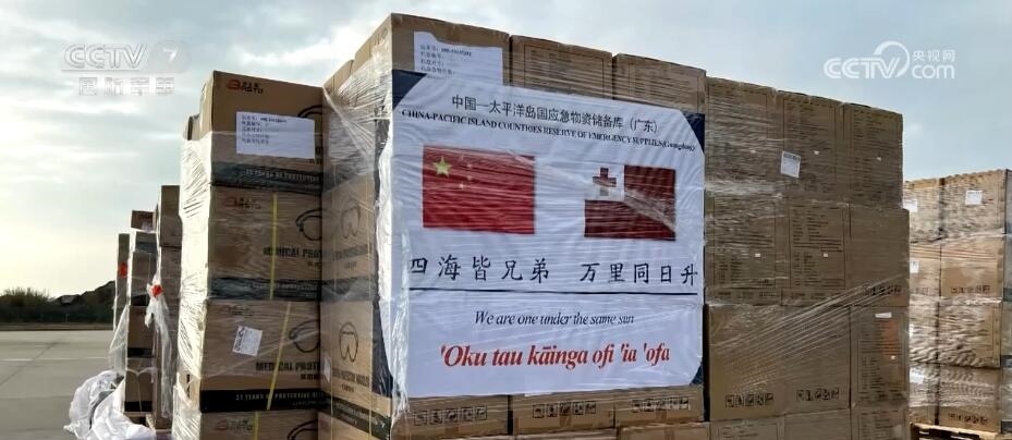 空軍航空兵某團(tuán) 楊樹帥:當(dāng)時(shí)我們集裝的貨物上都印有一面中國(guó)國(guó)旗和(一面)湯加國(guó)旗,并印了一句中國(guó)古詩“四海皆兄弟,萬里同日升”。