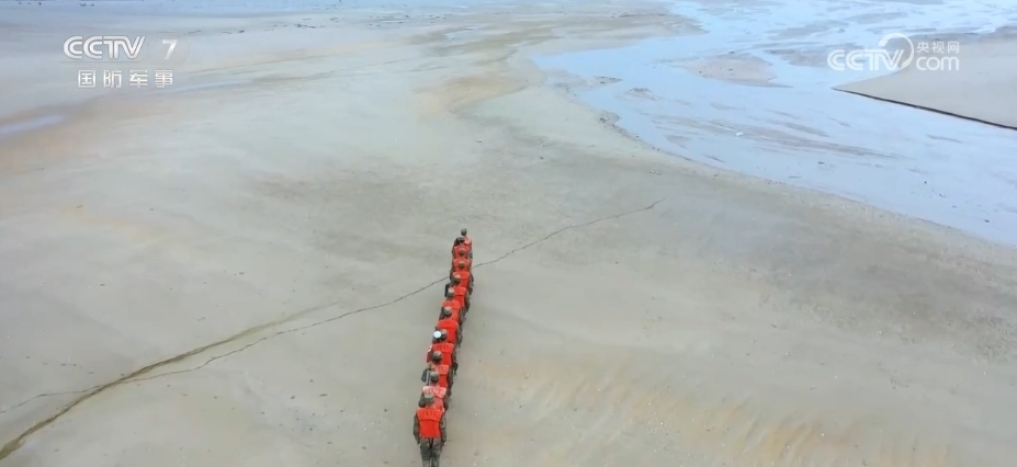 這一刻莊重而肅穆,燦爛的陽光幻化成樂譜,洶涌的浪花擊打出音符,海測兵們的步伐打著節(jié)拍,堅定地朝著界碑的方向進發(fā)。