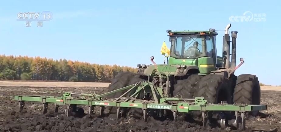 北大荒集團(tuán)趙光農(nóng)場有限公司第九管理區(qū)副主任 周磊:半鏈軌過去之后,不破壞壟型,不誤車,能加快秋收的作業(yè)速度。我們預(yù)計(jì)在(10月)18日大豆全部收獲結(jié)束。