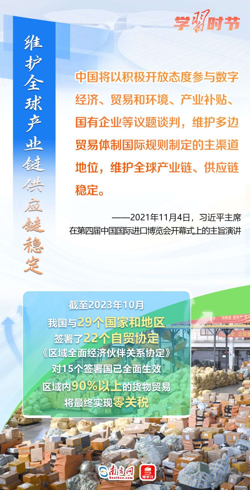 11月5日至10日,第六屆中國國際進(jìn)口博覽會將在上海舉行。這個由習(xí)近平主席親自謀劃、親自部署、親自推動的世界上首個以進(jìn)口為主題的國家級展會,目前已成為舉世矚目的貿(mào)易盛會、開放合作的重要平臺、全球共享的國際公共產(chǎn)品。第六屆進(jìn)博會舉行在即,讓我們通過一組海報(bào),重溫習(xí)近平主席在過去五屆進(jìn)博會上的重要講話,深刻認(rèn)識高水平對外開放的時代意義與關(guān)鍵作用。