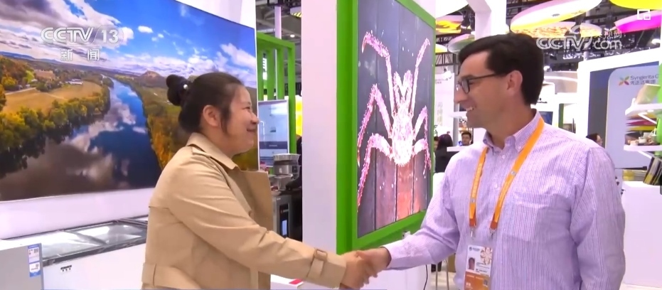 進博會的最后一天,記者來到美國食品和農(nóng)產(chǎn)品館時,美國參展商克里斯依舊在緊張地和客戶對接洽談,此時距離閉幕只剩下不到6個小時。