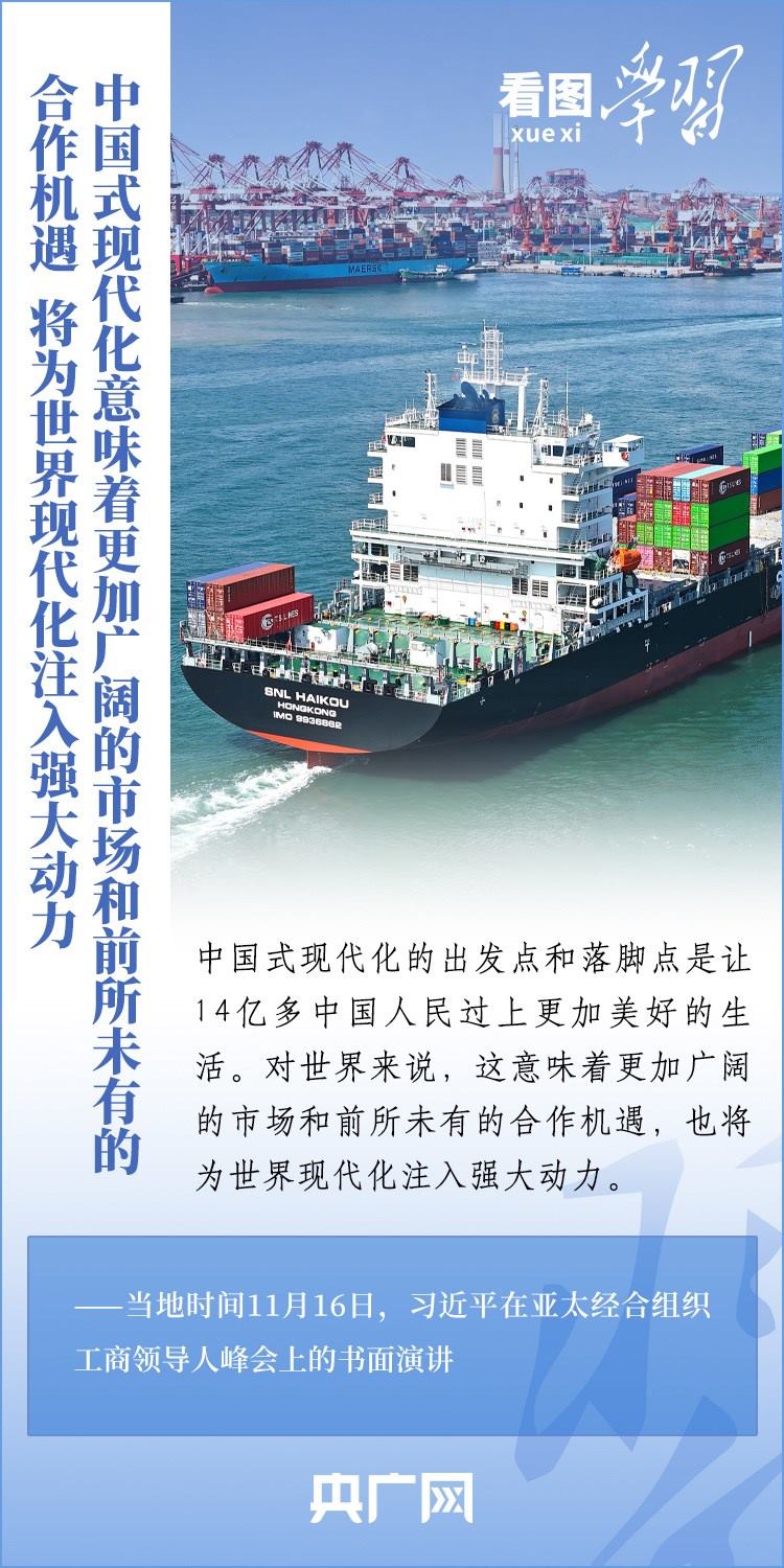 當(dāng)?shù)貢r間11月16日,國家主席習(xí)近平應(yīng)邀出席亞太經(jīng)合組織工商領(lǐng)導(dǎo)人峰會并發(fā)表書面演講。習(xí)主席深刻總結(jié)了亞太經(jīng)濟合作30年來非凡成就和啟示,對亞太合作下一個30年將走向何方這一新的時代之問提出中國答案,重申“中國打造市場化、法治化、國際化營商環(huán)境的決心不會變,一視同仁為外商投資提供優(yōu)質(zhì)服務(wù)的政策不會變”,向全球工商界發(fā)出邀請,歡迎“積極參與中國式現(xiàn)代化進程,共享中國高質(zhì)量發(fā)展帶來的巨大機遇!”一起來學(xué)習(xí)。