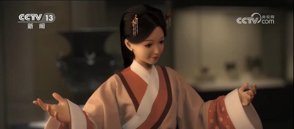 國家博物館文物活化領(lǐng)導(dǎo)小組辦公室副主任 賀占哲:她既是一個虛擬角色,她也是一個數(shù)智角色。這個形象打造既是現(xiàn)代的一個新青年,同時也是一個代表中華優(yōu)秀傳統(tǒng)文化,又有歷史氣息,又有青春氣息的形象,她所有的頭飾服飾包括這種妝容都是經(jīng)得起考究的。