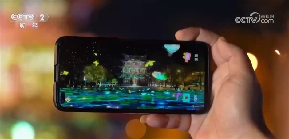 總臺記者 魏雨彤:我現(xiàn)在所在的商圈正是燈光節(jié)的核心區(qū)域,柔和的燈光線條點亮樓宇建筑的天際線,一路繁華一路景,各色燈光交相輝映,讓夜晚變得多姿多彩。