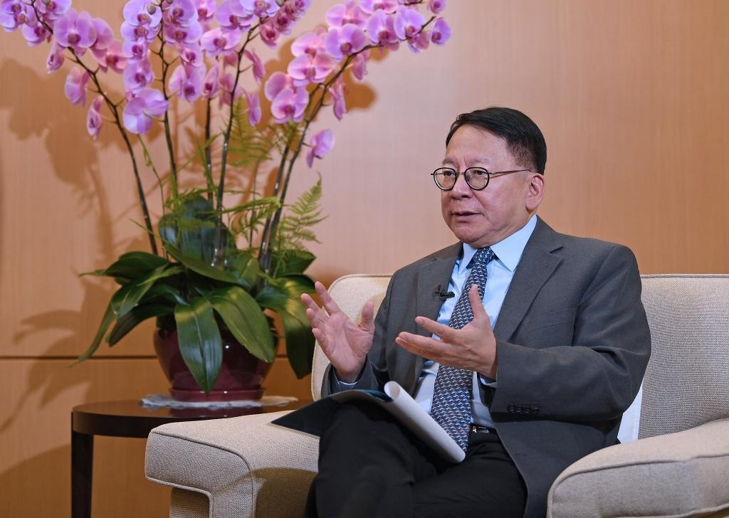11月27日,香港特區(qū)政府政務司司長陳國基接受采訪。新華社記者 陳鐸 攝
