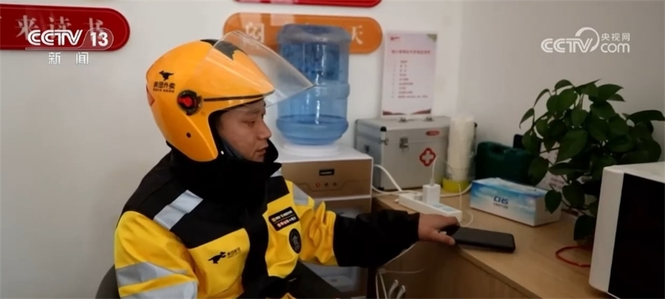 由于氣溫持續(xù)走低,外賣(mài)訂單量激增。在菏澤市定陶區(qū),當(dāng)?shù)卮蛟炝?0家休息驛站,為外賣(mài)員、快遞員等戶外作業(yè)人員提供熱水、手機(jī)充電、熱飯就餐等服務(wù)。
