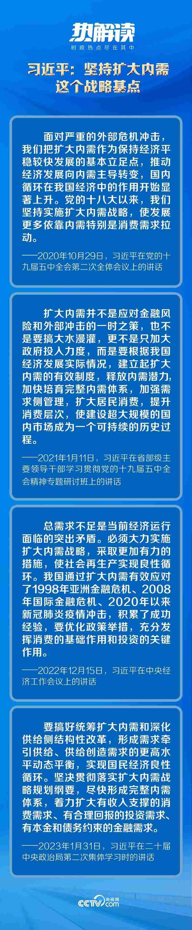 黨的十八大以來,習近平總書記從我國經濟運行的實際出發(fā),對擴大內需作出了一系列重要論述,為實施擴大內需戰(zhàn)略提供了科學指引。