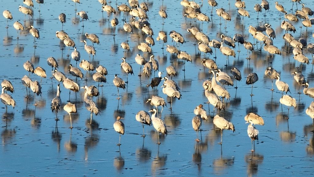 “經(jīng)過(guò)近兩周的密切監(jiān)測(cè),我們已掌握這些鶴的種群數(shù)量、活動(dòng)規(guī)律等情況。灰鶴作為衡水湖的‘老朋友’,屬?lài)?guó)家二級(jí)保護(hù)野生動(dòng)物,每年12月初陸續(xù)遷徙至此,直至次年2月飛返夏季棲息地。由于前段時(shí)間氣溫較高,今年鶴群抵達(dá)衡水湖的時(shí)間稍晚。而去年12月新記錄到的國(guó)家一級(jí)保護(hù)野生動(dòng)物——白頭鶴,這次隨灰鶴再次抵達(dá)。這標(biāo)志著它已認(rèn)準(zhǔn)了衡水湖這個(gè)冬天的‘家’?!?張余廣說(shuō)。