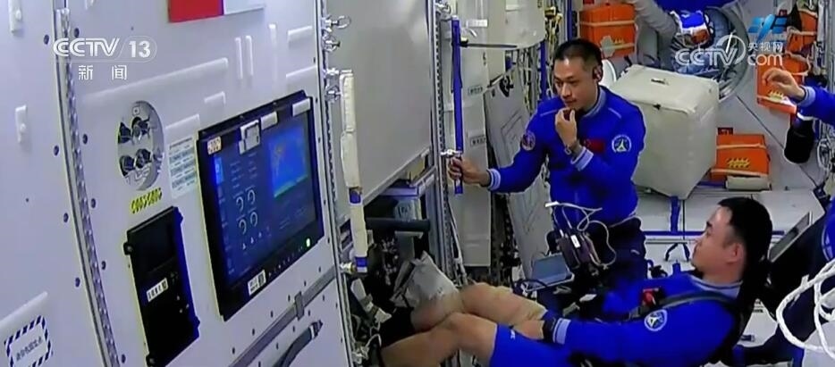 這張圖片展現(xiàn)的是神舟十七號乘組近期開展航天醫(yī)學領域實驗的場景,在隊友湯洪波和江新林的幫助下,航天員唐勝杰穿戴起實驗儀器,進行下肢運動學測試實驗。