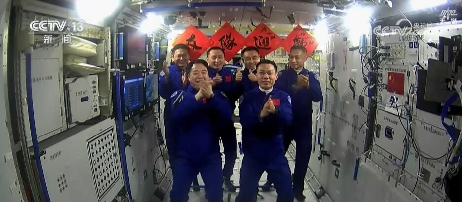 2023年10月26日19時34分,神舟十六號航天員乘組打開“家門”,歡迎神舟十七號航天員湯洪波、唐勝杰、江新林入駐“天宮”。兩個乘組在軌共同生活了約5天后,神舟十六號航天員在返回地球途中,還完成了此次飛行任務最后一項工作,首次拍攝了以地球為背景的中國空間站全景高清照片。