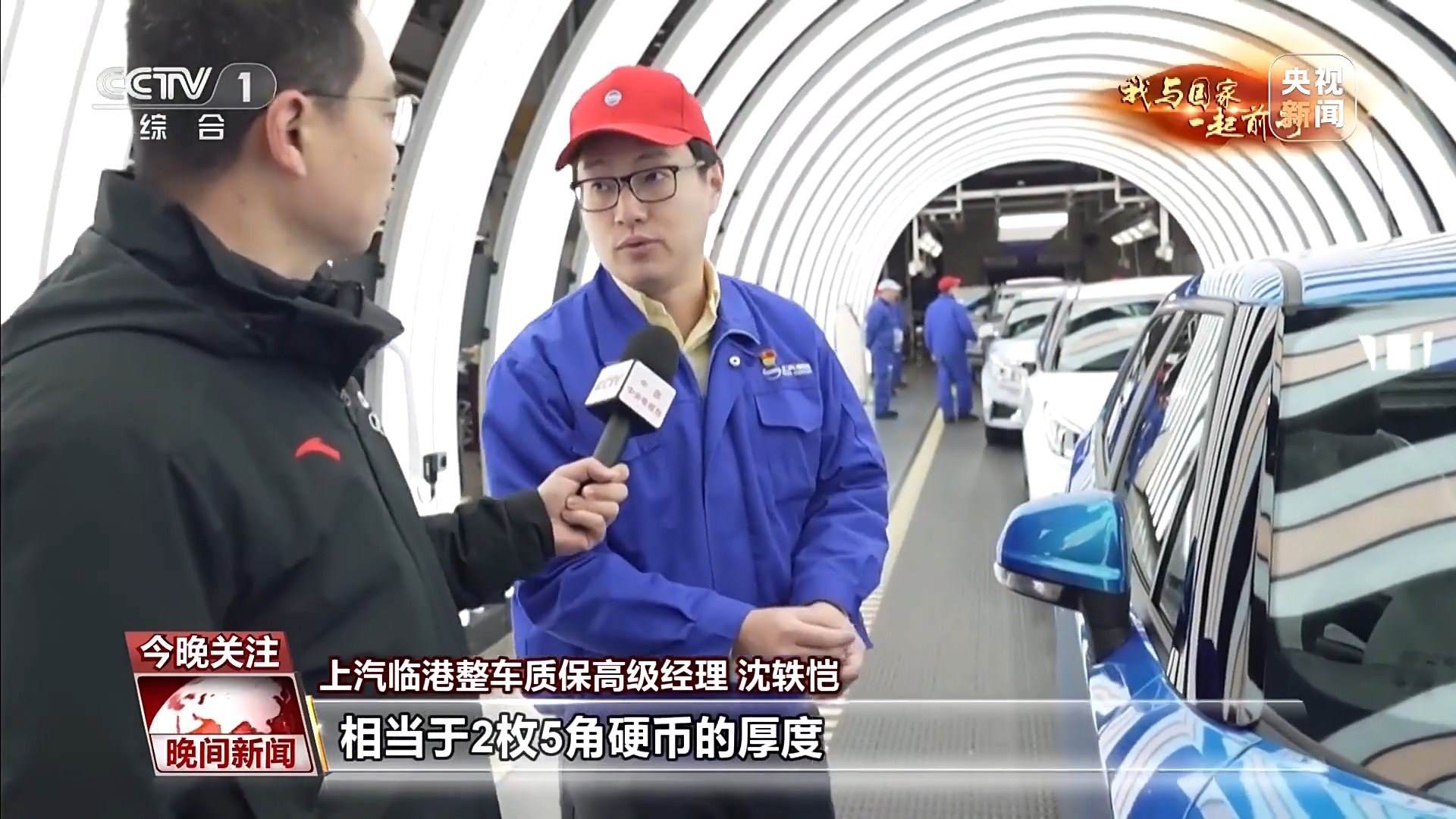 上汽臨港整車質保高級經理 沈軼愷:比如我們對于車門的縫隙控制,都有嚴格的質量控制,確保它們拼合在一起是均勻的一致的。每條縫只有4毫米的間隙,相當于2枚5角硬幣的厚度。