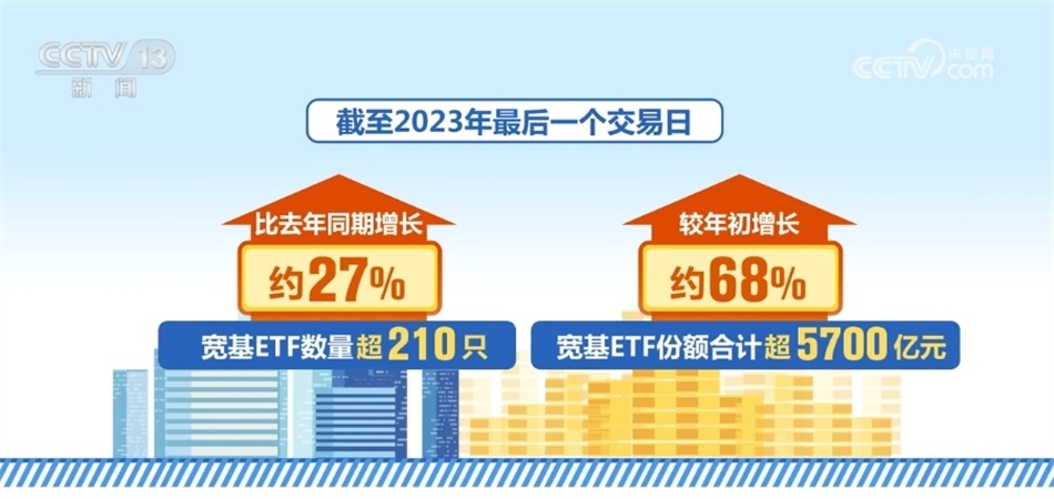 總臺(tái)央視記者 董彬:根據(jù)投資標(biāo)的的不同,股票型ETF可以劃分為寬基ETF、行業(yè)ETF、主題ETF、風(fēng)格ETF等。其中,寬基ETF是追蹤指數(shù)覆蓋面較廣泛、具有相當(dāng)代表性的一類產(chǎn)品。我們通過數(shù)據(jù)分析發(fā)現(xiàn),2023年全年寬基ETF增幅較為明顯。