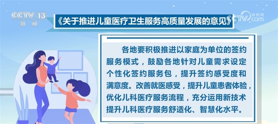 《意見》要求,各地要積極推進(jìn)以家庭為單位的簽約服務(wù)模式,鼓勵各地針對兒童需求設(shè)定個性化簽約服務(wù)包,提升簽約感受度和滿意度。改善就醫(yī)感受,提升兒童患者體驗,優(yōu)化兒科醫(yī)療服務(wù)流程,充分運用新技術(shù)提升兒科醫(yī)療服務(wù)舒適化、智慧化水平。