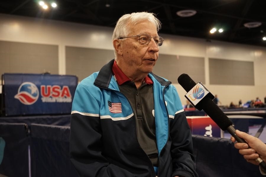 2023年12月16日,中美“乒乓外交”親歷者戴爾·斯威里斯在2023年美國(guó)乒乓球公開(kāi)賽老年組比賽間隙接受新華社記者專(zhuān)訪(fǎng)。