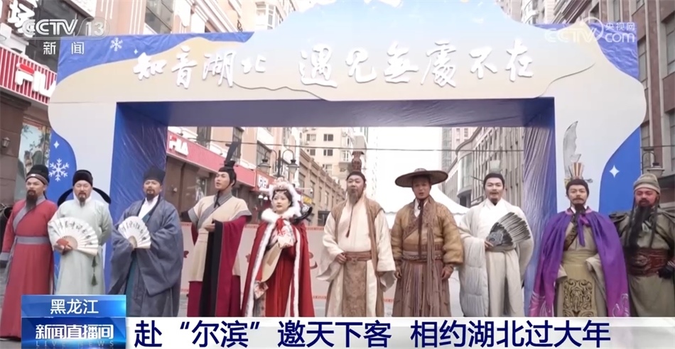 這些天,一群來自湖北的特殊游客抵達(dá)黑龍江哈爾濱,開啟他們的冰雪之旅。他們是湖北省文化和旅游廳組織扮演的“歷史名人天團(tuán)”,既有屈原、伯牙子期等,也有李白、蘇東坡等曾在湖北留下著名詩篇的文人。他們在中央大街聚首,“拼”詩詞展音律,傳遞傳統(tǒng)文化之美。在暢享北國風(fēng)光的同時(shí),也為游客們送上一場超級(jí)文旅秀和文旅大禮包,邀請全國游客“去湖北過大年”。