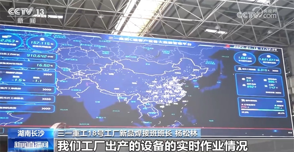 三一重工18號工廠新品焊接班班長 楊松林:來我們“燈塔工廠”參觀,我們都會看到一個超級大的屏幕,每一個閃光點都代表著我們工廠出廠的設(shè)備的實時作業(yè)情況。這些閃光點最后就形成了一個三一的挖掘機(jī)指數(shù),就相當(dāng)于我們業(yè)內(nèi)工程行業(yè)的一個晴雨表,其實我們還是挺自豪的。