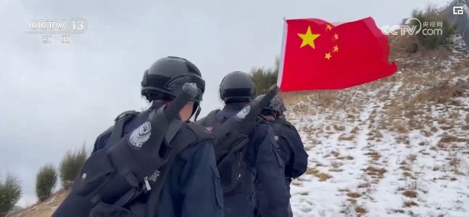 巡邏路有一半是蜿蜒崎嶇的山路,另一半則是陡峭的山坡和聳入云霄的直梯,巡邏一趟至少需要4個小時。在588號界碑旁,民警們舉行了升旗儀式,看著五星紅旗在南疆“云梯”上冉冉升起,每個人的臉上寫滿自豪。