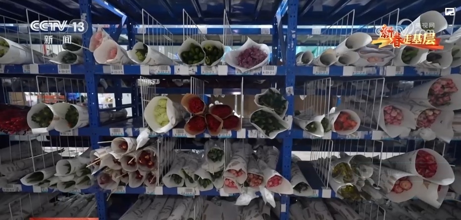春節(jié)期間五彩繽紛、種類繁多的年宵花成為主角,玫瑰、臘梅、郁金香都是市場(chǎng)“寵兒”。這幾天,周琦他們的日訂單量已經(jīng)從2500單增加到3000多單。