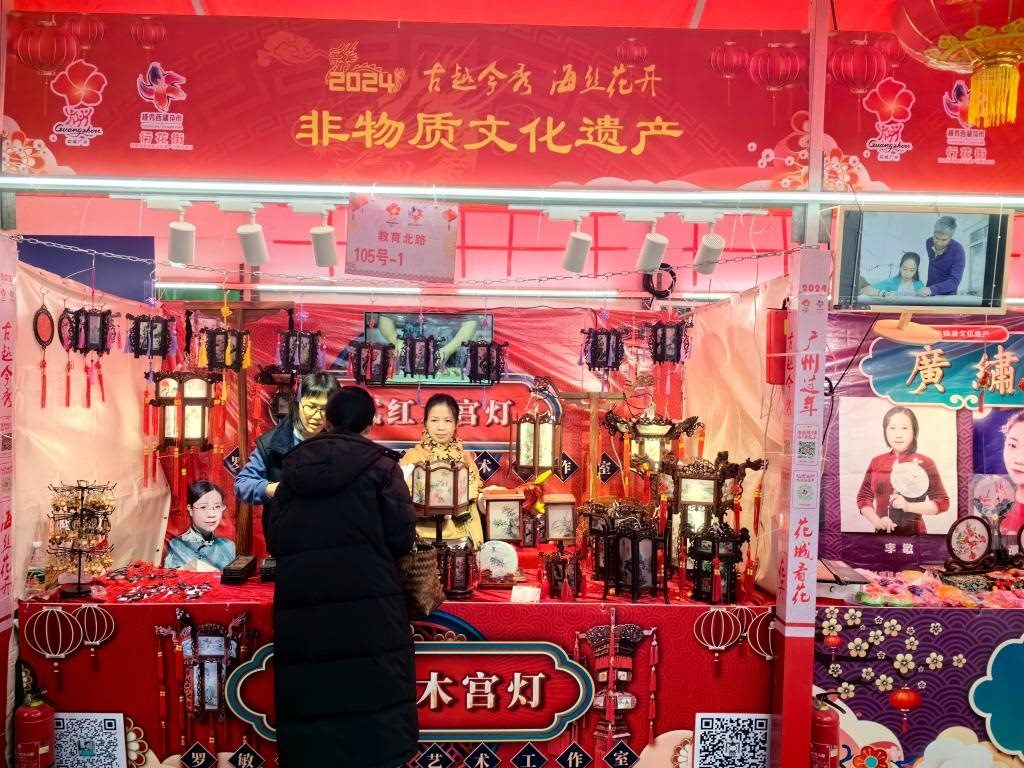 廣州欖雕、廣繡、打銅工藝、廣州醒獅、廣州餅印、粵語相聲、廣式紅木宮燈等8個非遺項目亮相花市,吸引游客駐足觀賞?,F(xiàn)場展出的160多個賣花檔口中,粉色的劍蘭、潔白的百合、火紅的玫瑰、金燦燦的年橘等依舊是“搶手貨”,而具有“財源滾滾來”意頭的吊鐘花也得到不少市民的青睞。