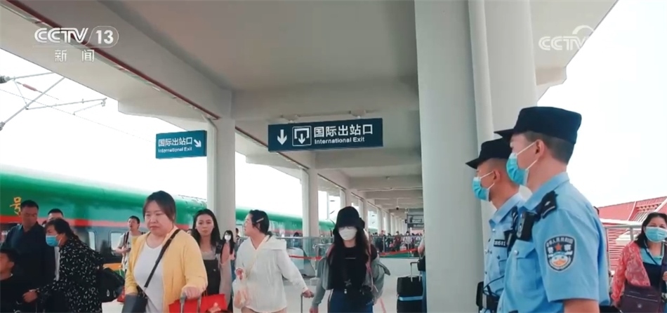 在磨憨站,出入境人員熙熙攘攘,異常熱鬧,來(lái)自不同國(guó)家和地區(qū)的旅客有序通過(guò)國(guó)際安檢區(qū)并經(jīng)海關(guān)查驗(yàn)后,在磨憨邊檢站鐵路口岸執(zhí)勤專班民警指引下排隊(duì)、核驗(yàn)證件,順利通關(guān)。