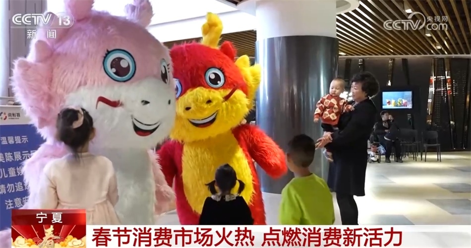 春節(jié)期間,寧夏也推出了一系列迎新春促消費活動。在寧夏銀川市金鳳區(qū)的一家大型商業(yè)綜合體里,各種以龍為元素的裝扮讓整個商場里年味十足。