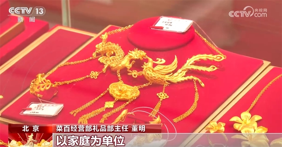 菜百經(jīng)營部禮品部主任 董明:春節(jié)這幾天每天客流量都有上萬人,以家庭為單位,包括年輕人也越來越多,把柜臺圍得水泄不通。