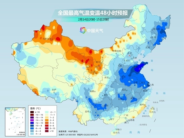 具體來看,14日隨著冷空氣主體抵達,北方大部氣溫將出現(xiàn)明顯下滑,內(nèi)蒙古東部、吉林等地降溫10℃以上,15日,江淮、江南等地也會迎來10℃以上的“斷崖”式降溫。