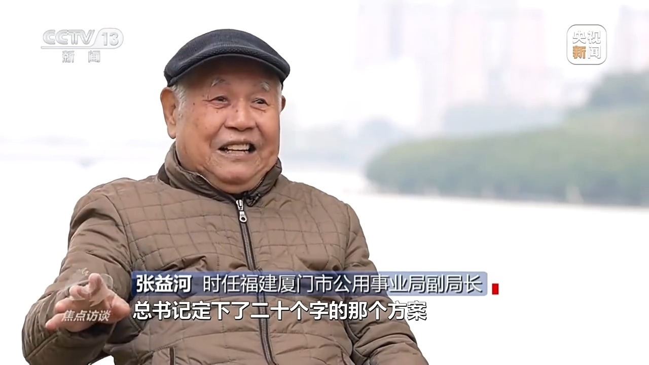 時任福建廈門市公用事業(yè)局副局長 張益河:“總書記定下了二十字方案,給生態(tài)保護、生態(tài)恢復、水污染治理開了先河,是廈門的第一炮?!?/p>