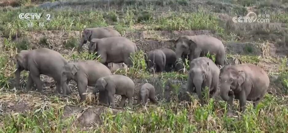 在云南省普洱市江城縣康平鎮(zhèn)后山,一個亞洲象群在休息了6個多小時以后陸續(xù)走出林子往山下走去,開啟了它們每天長達十幾個小時的進食時光,首先成為它們“開胃菜”的是一棵小樹。監(jiān)測員用無人機航拍記錄下了這個場景。