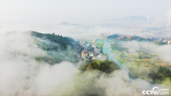 2024年3月20日,湖南永州,新田縣現(xiàn)平流霧景觀,如夢(mèng)如幻。