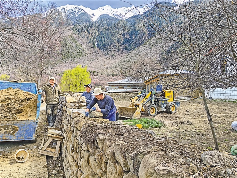 漫步村落,遠遠就聽見喧鬧聊天和砌墻的聲音,原來是強巴一家正在給果園砌圍墻。“院里的蘋果樹發(fā)芽了,為了防止牛吃,我們就用石頭將圍墻壘得高一些,杜絕一切影響蘋果收成的因素?!睆姲退实匦Φ?,“去年我們家賣蘋果共收入4萬元,一年之計在于春,現(xiàn)在就要做足準備,今年收成肯定會更好!”閑談間,強巴從家里拿出一籃自家產的蘋果分給大家吃,深紅的蘋果在陽光下閃耀著誘人的光澤,散發(fā)著春天的甜美氣息。
