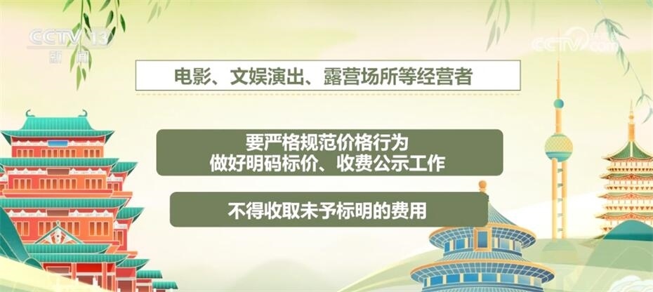 電影、文娛演出、露營場所等經(jīng)營者要嚴(yán)格規(guī)范價格行為,做好明碼標(biāo)價、收費公示工作,不得收取未予標(biāo)明的費用。