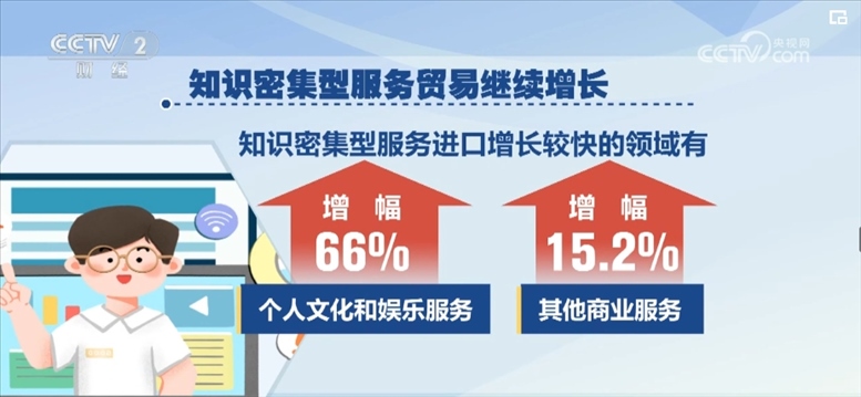 知識(shí)密集型服務(wù)貿(mào)易繼續(xù)增長。2024年一季度,知識(shí)密集型服務(wù)進(jìn)出口7332.6億元,增長5.6%。其中知識(shí)密集型服務(wù)出口增長較快的領(lǐng)域有知識(shí)產(chǎn)權(quán)使用費(fèi)、個(gè)人文化和娛樂服務(wù),增幅分別為34.4%、19%;知識(shí)密集型服務(wù)進(jìn)口增長較快的領(lǐng)域有個(gè)人文化和娛樂服務(wù)、其他商業(yè)服務(wù),增幅分別為66%、15.2%。