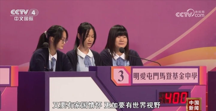 參賽學(xué)生鄧伯雯稱:“通過這次比賽,我們也學(xué)習(xí)到更多關(guān)于國家和香港的知識,對于國家其實有更強的自豪感。我們要去講好香港故事,要去宣傳好香港故事和中國故事,然后讓世界對于中國、對于香港有一個更好的認識。”