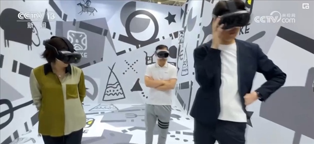 在四川展區(qū),一款四川本土研發(fā)的XR超高清沉浸式體驗(yàn)空間,吸引了參觀者的爭相體驗(yàn)。在這個(gè)由數(shù)千塊LED柔性屏形成的異型曲面空間里,觀眾不需要戴VR眼鏡,就可以沉浸式體驗(yàn)深度游三星堆遺址,近距離無死角地觀察文物,感受古蜀文明的細(xì)微之美。場景轉(zhuǎn)換,瞬間來到大熊貓基地,觀眾在方寸之間打卡合影,效果逼真。