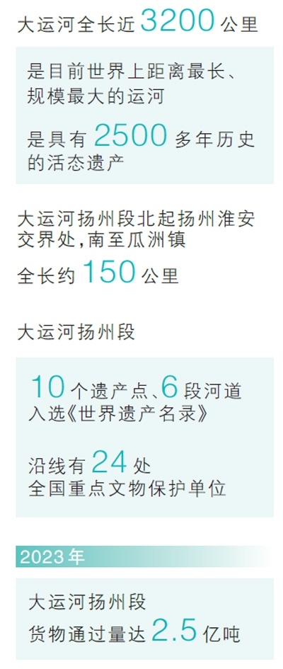 習(xí)近平總書記強調(diào):“揚州是個好地方,依水而建、緣水而興、因水而美,是國家重要歷史文化名城。千百年來,運河滋養(yǎng)兩岸城市和人民,是運河兩岸人民的致富河、幸福河。希望大家共同保護(hù)好大運河,使運河永遠(yuǎn)造福人民。”