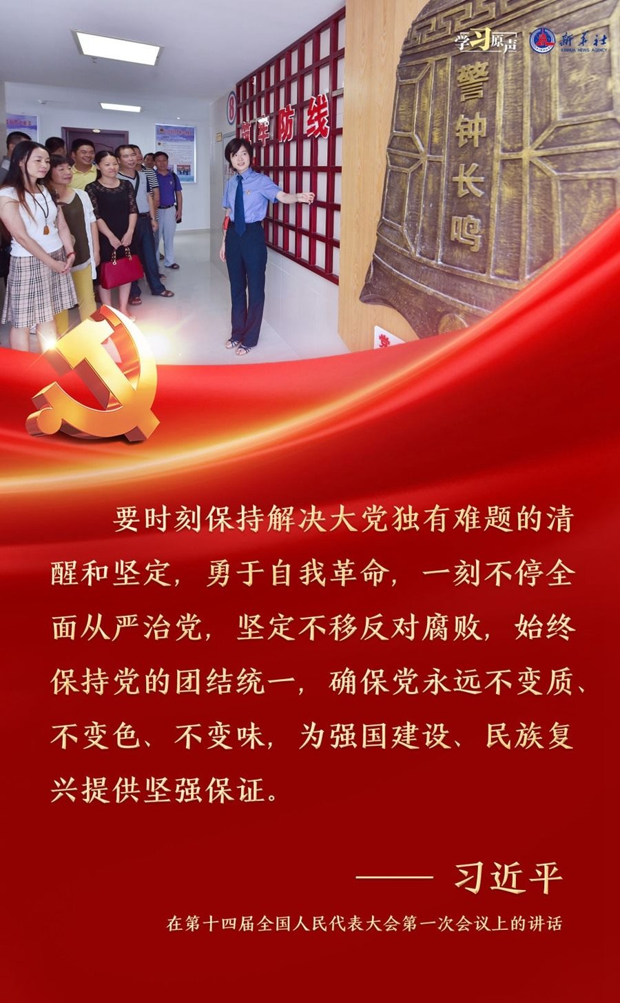習(xí)近平總書記強(qiáng)調(diào),面對(duì)新征程上的新挑戰(zhàn)新考驗(yàn),我們必須高度警省,永遠(yuǎn)保持趕考的清醒和謹(jǐn)慎,馳而不息推進(jìn)全面從嚴(yán)治黨,使百年大黨在自我革命中不斷煥發(fā)蓬勃生機(jī),始終成為中國人民最可靠、最堅(jiān)強(qiáng)的主心骨。