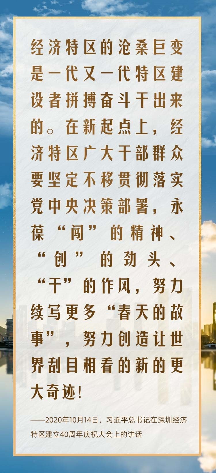 2020年10月,在慶祝深圳經濟特區(qū)建立40周年之際,習近平總書記又一次來到這里,出席慶祝大會,強調改革不停頓、開放不止步,在更高起點上推進改革開放,推動經濟特區(qū)工作開創(chuàng)新局面。