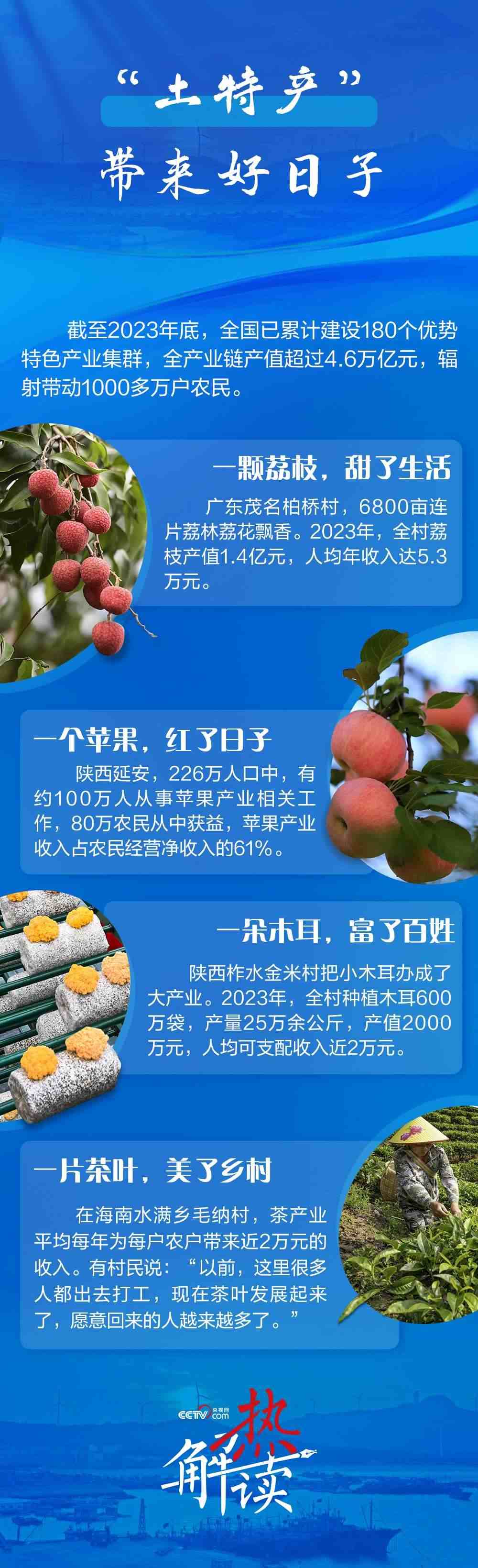 黨的二十屆三中全會(huì)通過(guò)的《中共中央關(guān)于進(jìn)一步全面深化改革、推進(jìn)中國(guó)式現(xiàn)代化的決定》提出,堅(jiān)持農(nóng)業(yè)農(nóng)村優(yōu)先發(fā)展,完善鄉(xiāng)村振興投入機(jī)制。2024年中央一號(hào)文件就“提升鄉(xiāng)村產(chǎn)業(yè)發(fā)展水平”進(jìn)行專章部署,鼓勵(lì)各地因地制宜大力發(fā)展特色產(chǎn)業(yè),支持打造鄉(xiāng)土特色品牌。