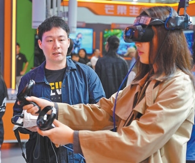 2024中國新媒體技術(shù)展上,參觀者在進(jìn)行AR互動(dòng)體驗(yàn)。人民網(wǎng)記者 吳茜薇攝