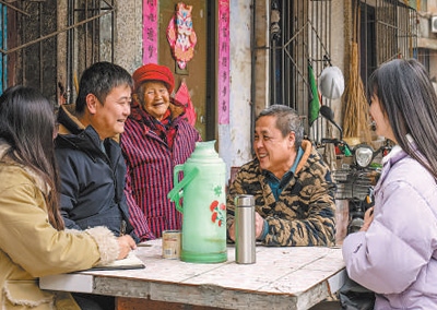 四川省自貢市沿灘區(qū)鄧關(guān)街道鹽業(yè)社區(qū)干部聽取群眾對(duì)老舊小區(qū)改造的意見建議。