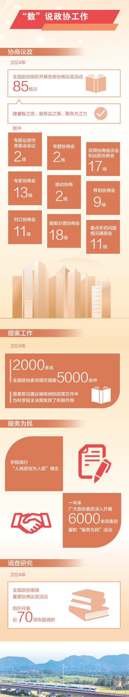 人工智能、綠色低碳、新質(zhì)生產(chǎn)力、文化遺產(chǎn)保護(hù)、人口高質(zhì)量發(fā)展、金融高質(zhì)量發(fā)展……協(xié)商議題緊扣“國之大者”和民之關(guān)切;專題議政性常委會會議、專題協(xié)商會、雙周協(xié)商座談會、遠(yuǎn)程協(xié)商會、專家協(xié)商會、界別協(xié)商會、提案辦理協(xié)商會……協(xié)商形式豐富多樣,過去一年,全國政協(xié)組織開展各類協(xié)商議政活動85場次。一年來,全國政協(xié)把協(xié)商議政工作放到黨和國家工作大局中精準(zhǔn)定位、科學(xué)謀劃,聚焦推進(jìn)中國式現(xiàn)代化,建睿智之言、獻(xiàn)務(wù)實之策、聚各方之力,協(xié)商議政質(zhì)量和成效不斷提升。